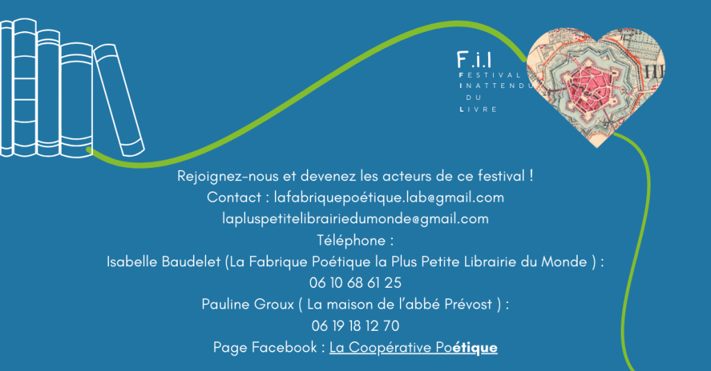 C’est une proposition et une invitation de la Fabrique Poétique avec La Plus Petite Librairie du Monde et La maison natale de l’abbé Prévost.